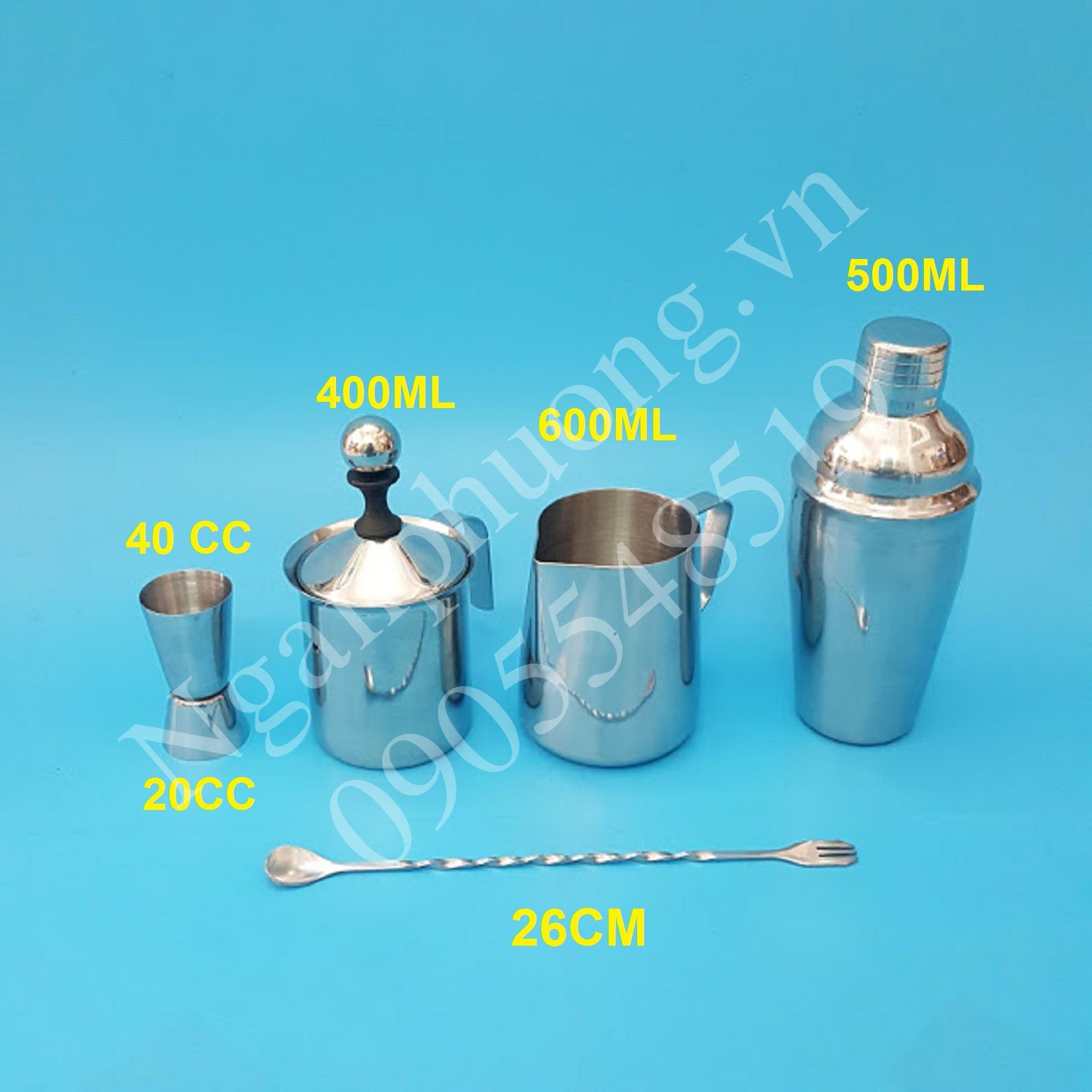COMBO 5 DỤNG CỤ INOX QUẦY BAR PHA CHẾ - SHAKER INOX 500ML